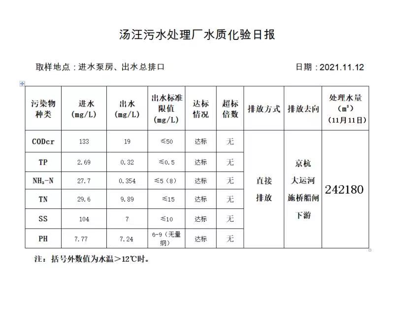 汤汪污水处理厂水质化验日报(2021.11.12)