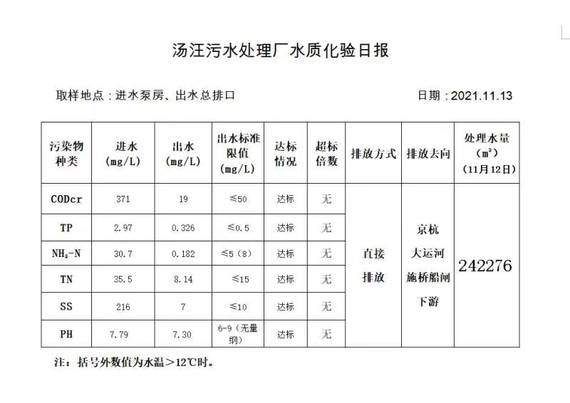 汤汪污水处理厂水质化验日报(2021.11.13)