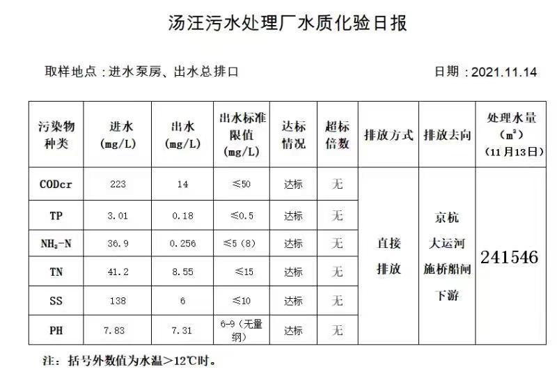 汤汪污水处理厂水质化验日报(2021.11.14)