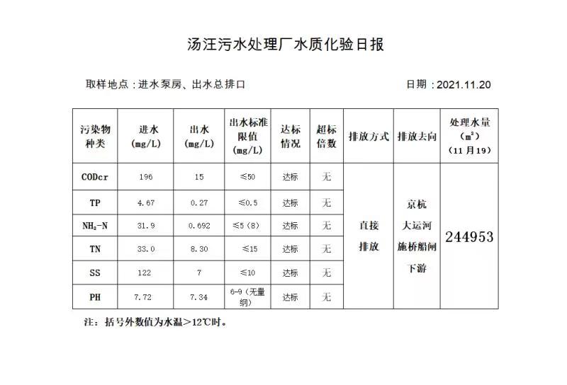 汤汪污水处理厂水质化验日报(2021.11.20)