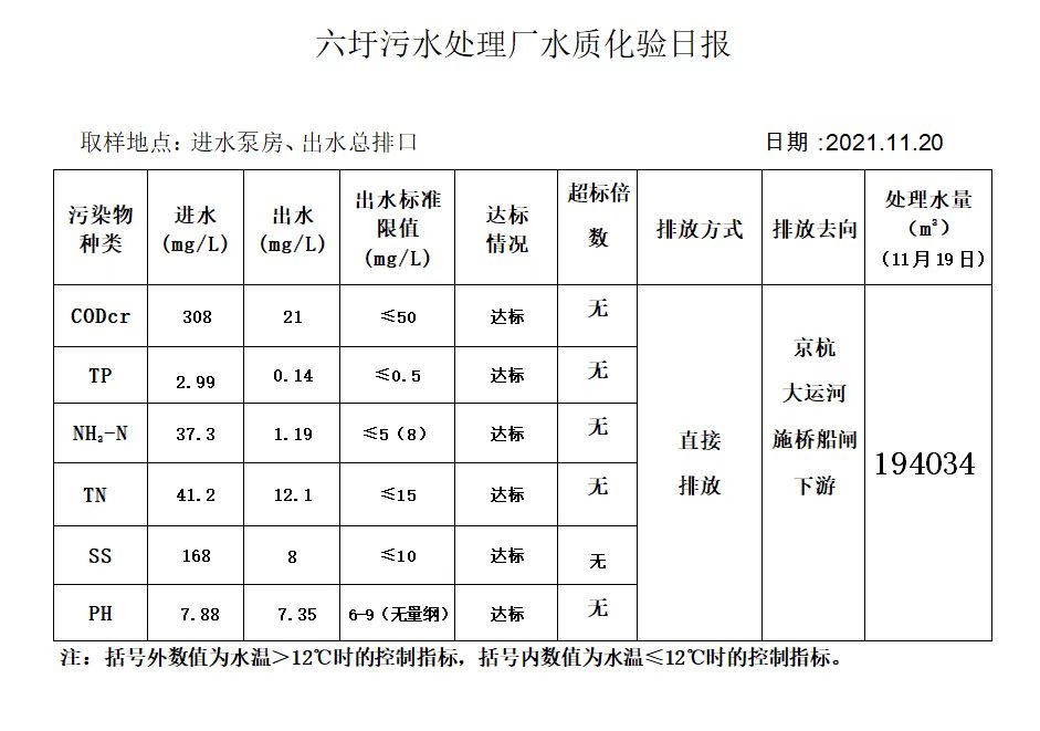 六圩污水处理厂水质化验日报(2021.11.20)