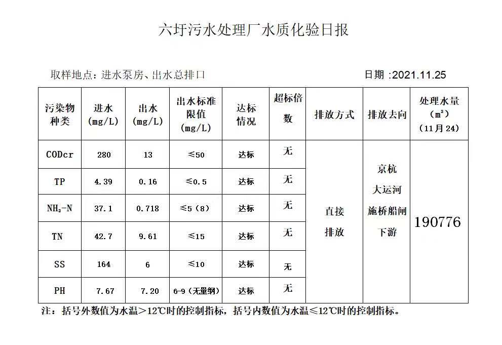 六圩污水处理厂水质化验日报(2021.11.25)