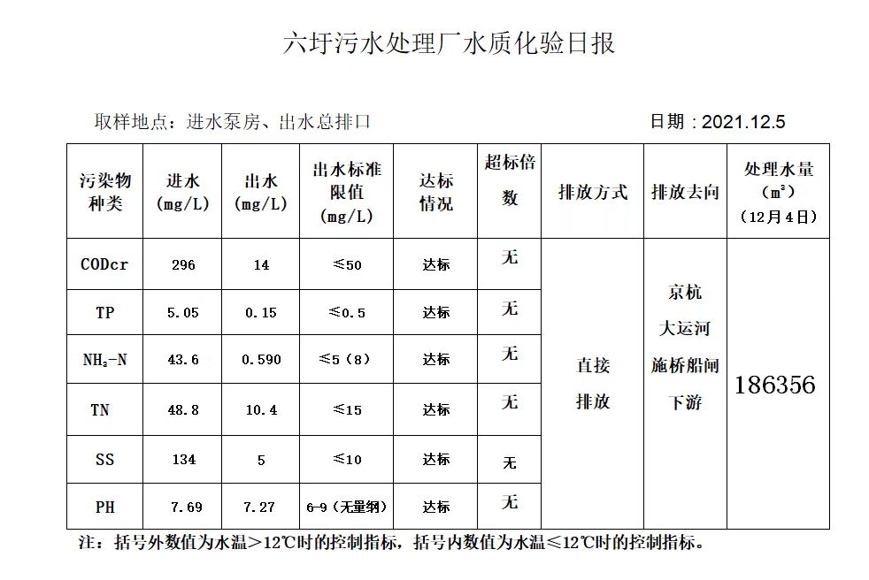 六圩污水处理厂水质化验日报(2021.12.5)
