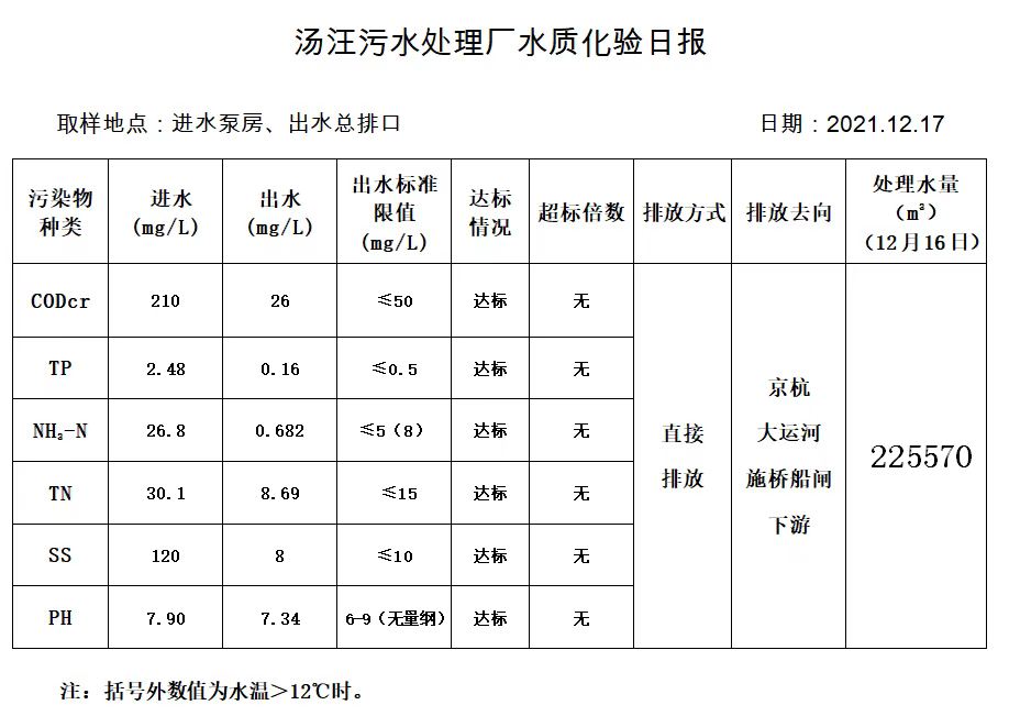 汤汪污水处理厂水质化验日报(2021.12.17)