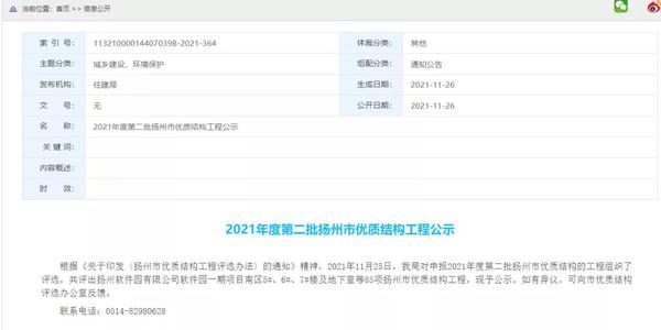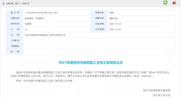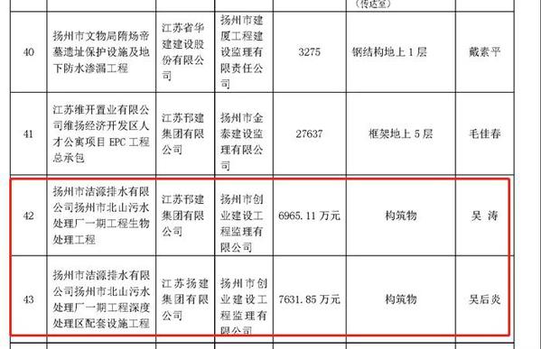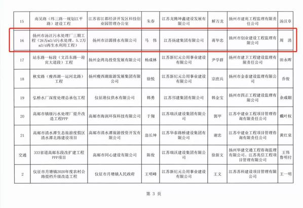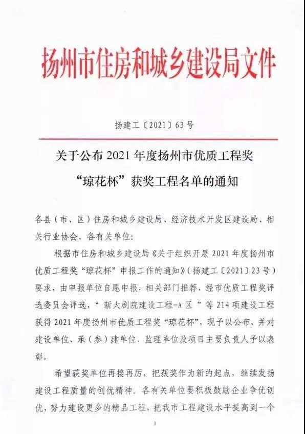 2021年底,扬州市优质工程奖“琼花杯”获奖工程名单揭晓,扬州市汤汪污水处理厂三期工程(26万吨/日污水处理、5.2万吨/日再生水利用工程)荣获2021年度“琼花杯”市政类优质工程奖。同时,汤汪三期尾水管线工程、北山一期工程生物处理区工程、北山一期深度处理区及配套设施工程、北山一期尾水管线工程,4个项目均获市文明工地称号;北山一期工程生物处理区工程、北山一期深度处理区及配套设施工程,2个项目荣获市优质结构。