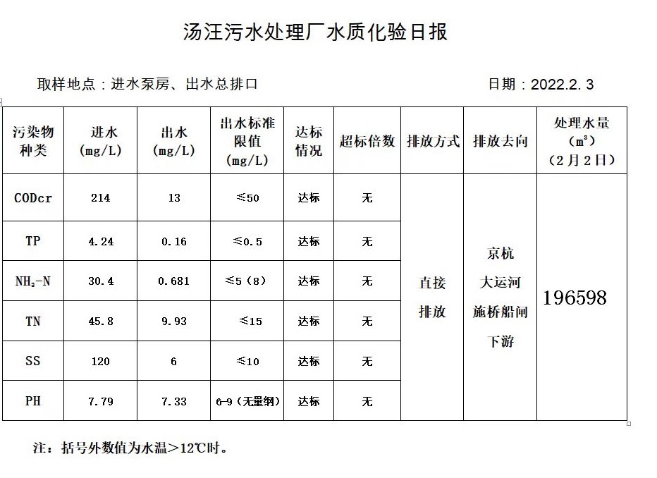 汤汪污水处理厂水质化验日报(2022.2.3)