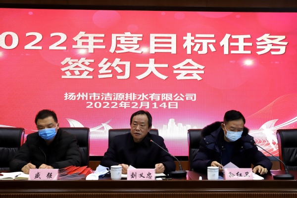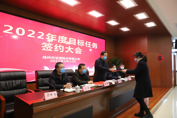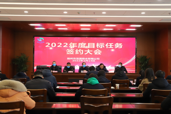 2月14日上午,扬州市洁源排水有限公司在五楼大会议室召开2022年度目标任务签约大会,公司领导班子全体成员、全体中层干部、部分职工代表参加了会议。