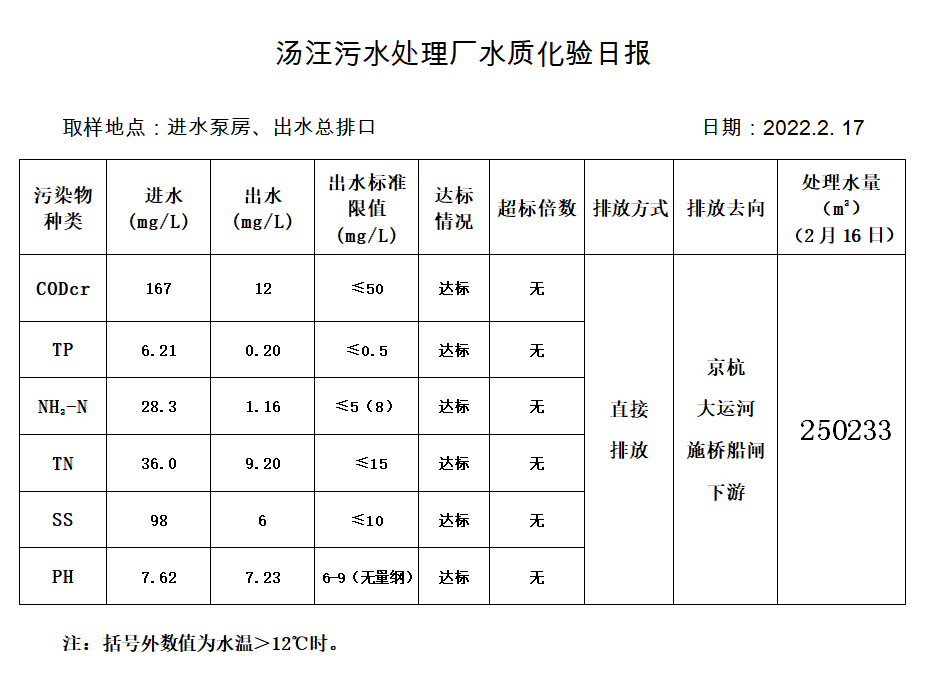 汤汪污水处理厂水质化验日报(2022.2.17)