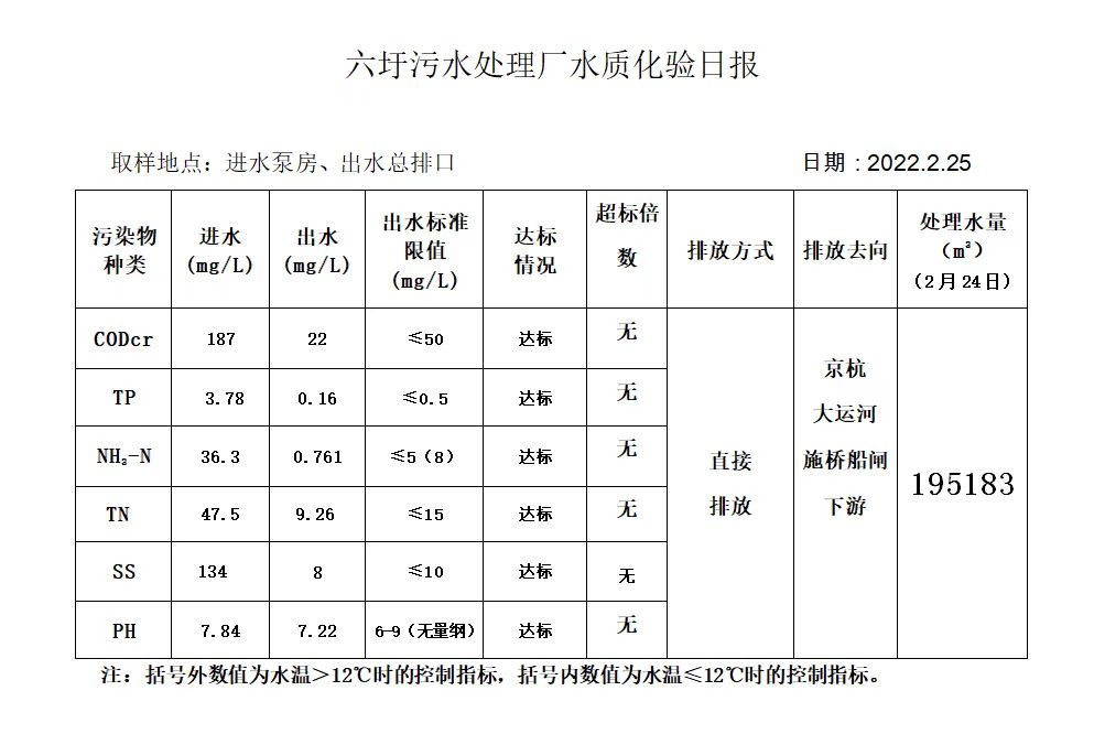 六圩污水处理厂水质化验日报(2022.2.25)