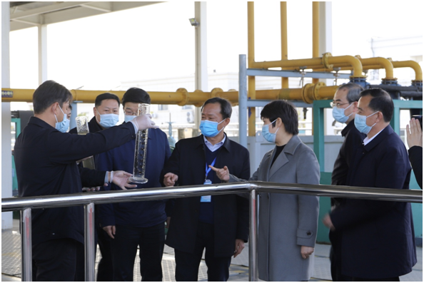 在环保综合展厅,张宝娟听取了汤汪污水处理厂的建设和运行方面的汇报,详细了解了项目的工艺选择、设计标准、出水水质,并询问了市区污水处理总规模和污水处理厂服务区域等情况。在高密度沉淀池,看着浑浊的污水变成透亮的清水,张宝娟对污水处理厂的工作成效表示满意。