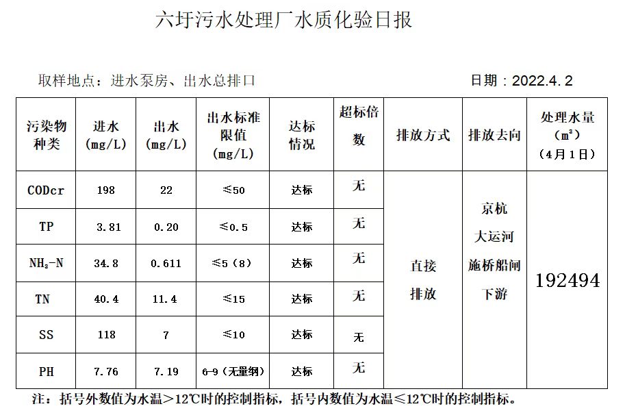 六圩污水处理厂水质化验日报(2022.4.2)