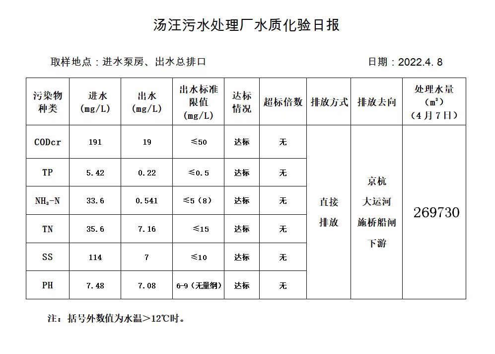 汤汪污水处理厂水质化验日报(2022.4.8)