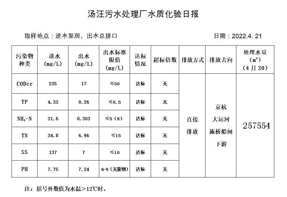汤汪污水处理厂水质化验日报(2022.4.21)