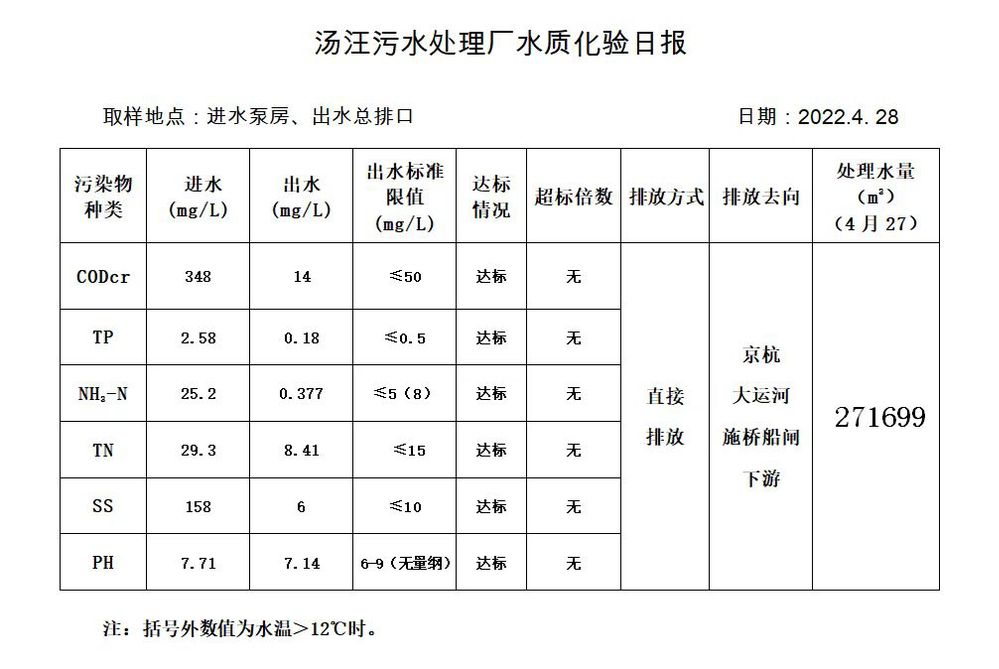 汤汪污水处理厂水质化验日报(2022.4.28)