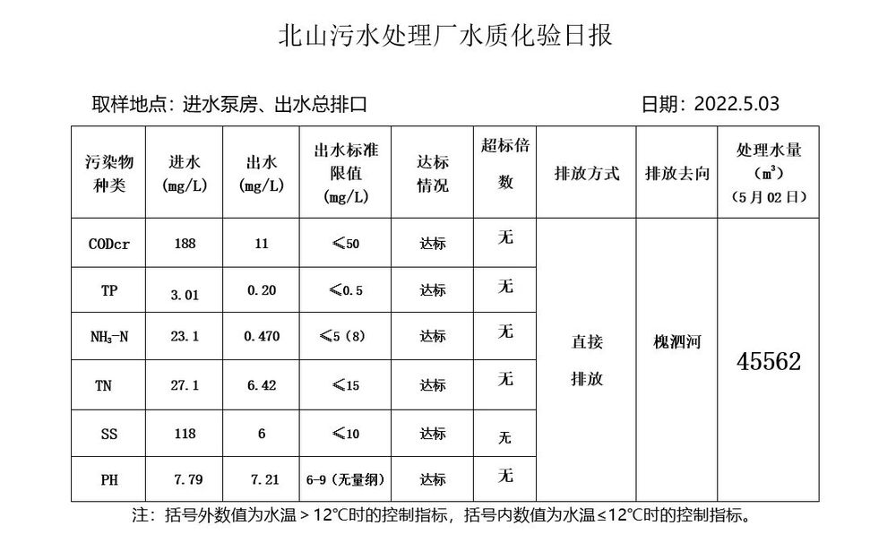 北山污水处理厂水质化验日报(2022.5.3)