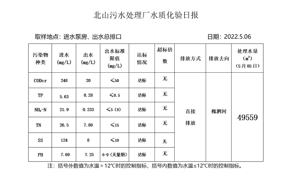 北山污水处理厂水质化验日报(2022.5.6)