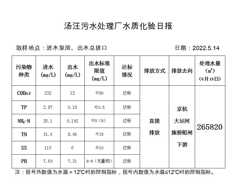 汤汪污水处理厂水质化验日报(2022.5.14)