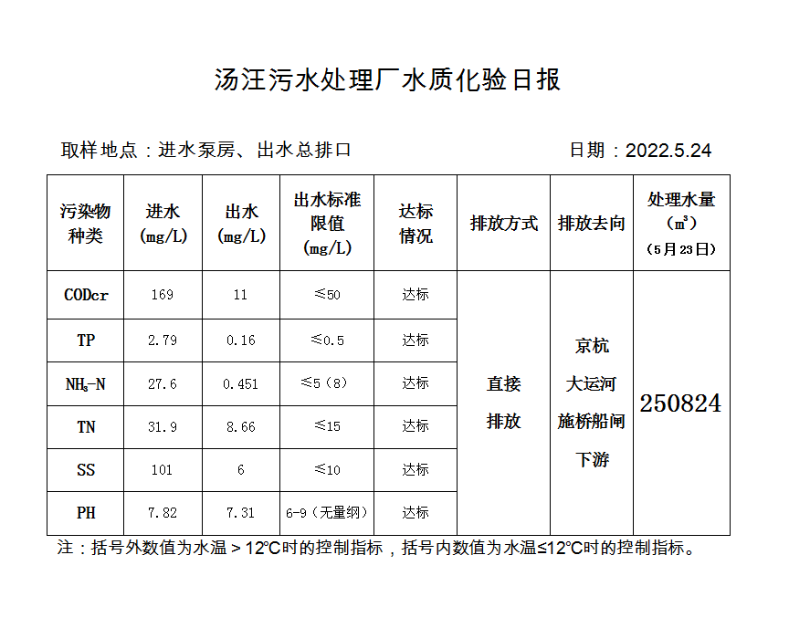 汤汪污水处理厂水质化验日报(2022.5.24)