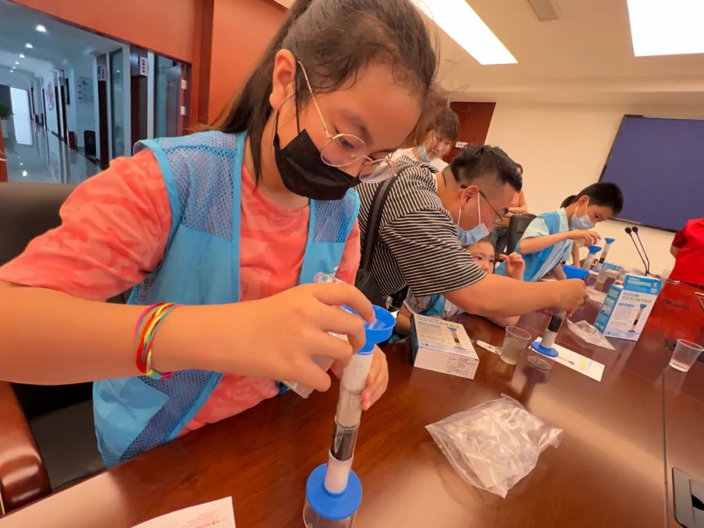 学生们回到环保公益课堂上,在了解污水净化知识原理后,亲自动手安装小型净水过滤器,在小实验中看到浑浊的污水变得清澈,不禁发出阵阵惊叹,对污水处理的具体流程有了更加直观的感受,在动手中加深了环保意识,纷纷争当净水小卫士。
