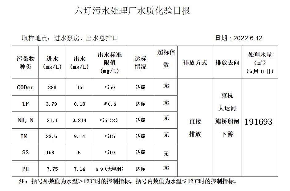 六圩污水处理厂水质化验日报(2022.6.12)