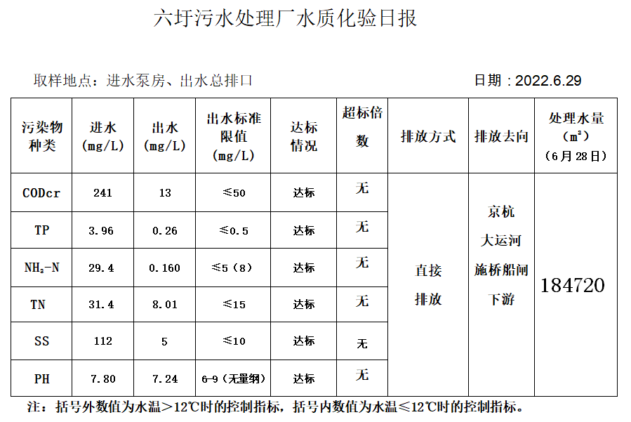 六圩污水处理厂水质化验日报(2022.6.29)