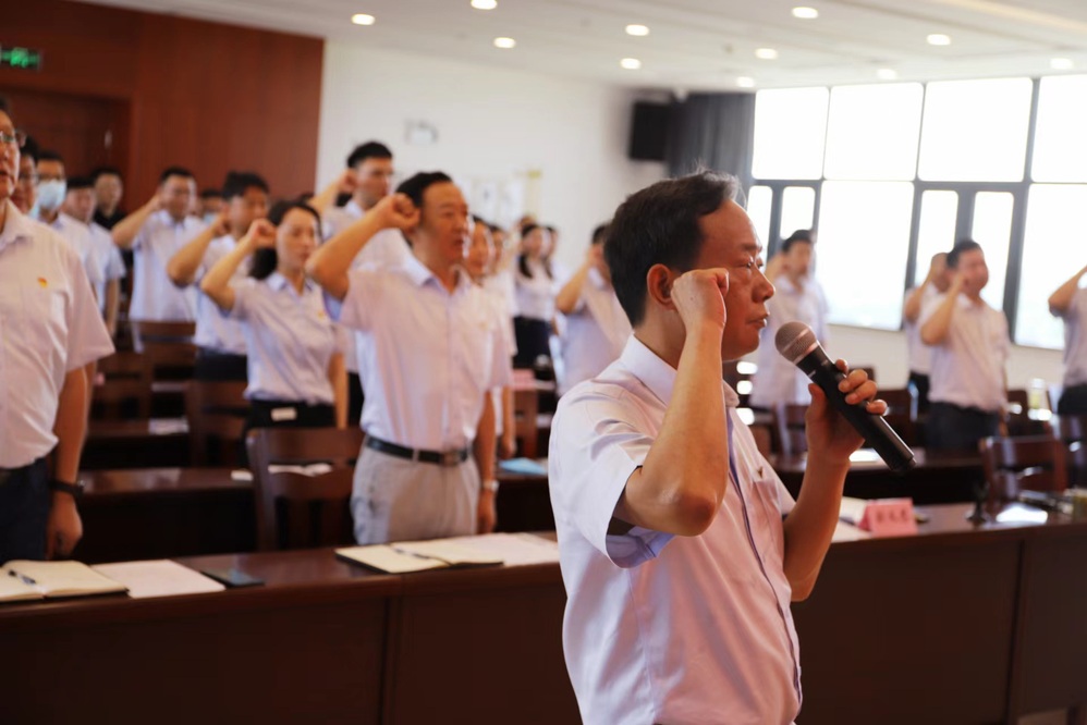 升旗仪式结束后,公司党总支书记带领全体党员重温了入党誓词,并为上半年入党同志集中过政治生日,赠送了政治贺卡及党建书籍。