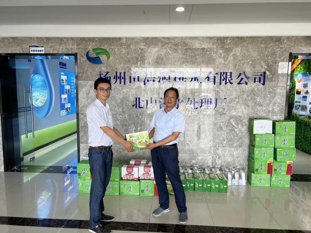 慰问小组分别来到汤汪、六圩、北山污水处理厂和设备维修现场,深入了解厂区在高温天气下的生产运行的情况和设备维保情况。慰问小组向在高温中坚守岗位,奋战在污水运行处理一线的生产人员表示问候,同时向他们送上了冰红茶、绿豆汤、八宝粥等降暑物资,并要求他们注重劳逸结合,合理安排人员作息时间,切实做好各项防暑降温安全措施。