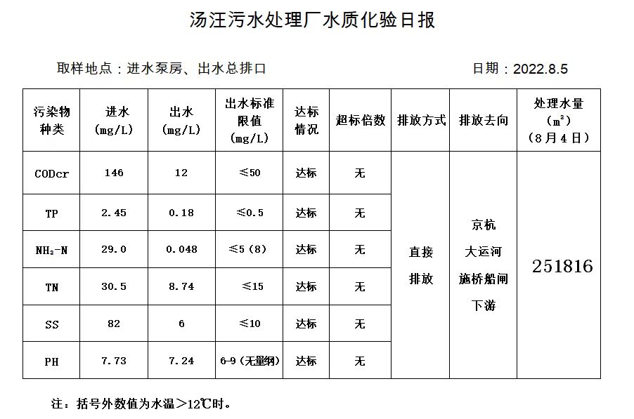 汤汪污水处理厂水质化验日报(2022.8.5)