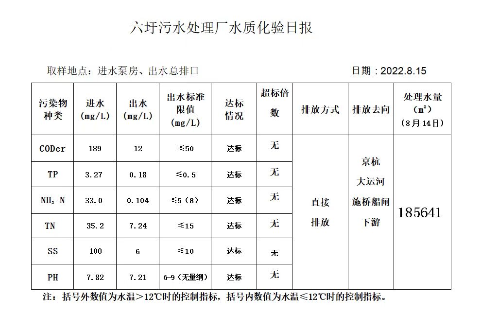 六圩污水处理厂水质化验日报(2022.8.15)
