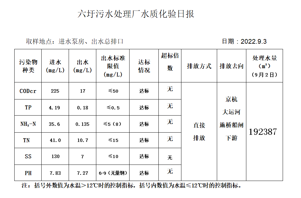 六圩污水处理厂水质化验日报(2022.9.3)