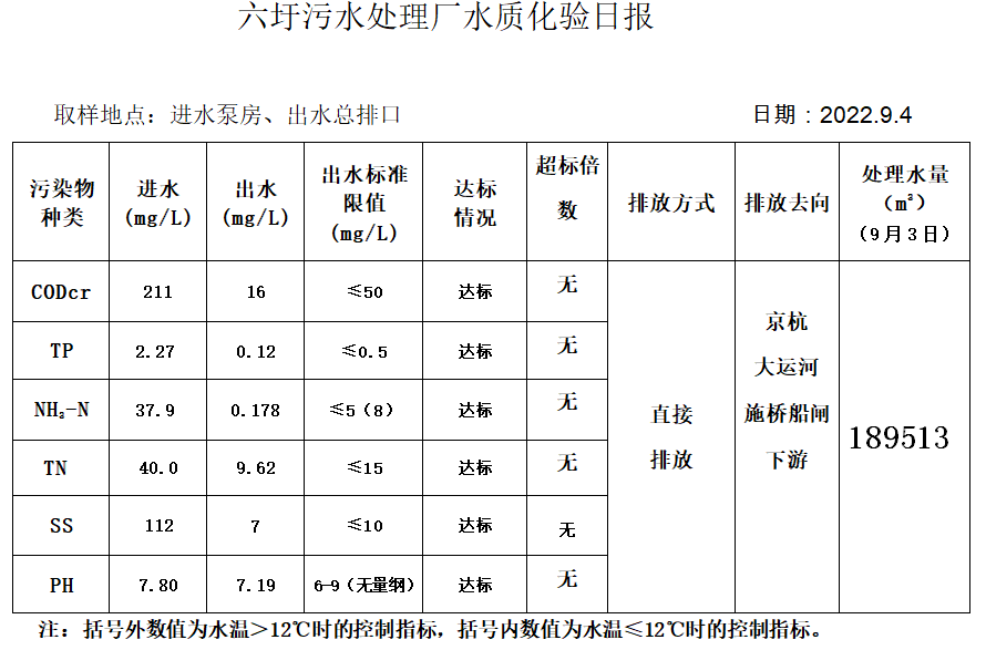 六圩污水处理厂水质化验日报(2022.9.4)