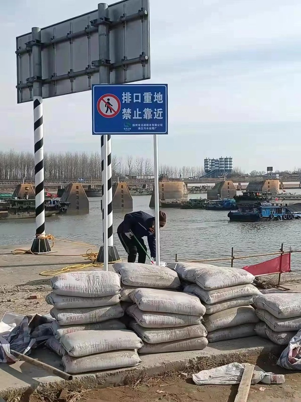 扬州市汤汪污水处理厂、六圩污水处理厂尾水排放口位于京杭大运河施桥闸附近,常常成为货运船只停泊之地,排放口的安全防护设施与安全警示标识因此遭到损坏,为了保障污水处理厂尾水排放管道与排放口运行满足安全规范要求,保护排放口周边群众生命财产安全,洁源排水公司根据安委会《关于开展全市重点行业领域安全生产百日攻坚行动的通知》要求,积极履行安全生产主体责任,投入20多万元,修缮汤汪污水处理厂、六圩污水处理厂尾水排放口的防护栏杆与安全警示标识,完善排放管线、井盖和排口安全警示标志,最大限度的消除了潜在的安全事故隐患,同时组织人员定期巡查排放管线和排放口的安全设施,形成常态工作机制,通过人防物防措施,全力降低尾水排放设施安全风险。
