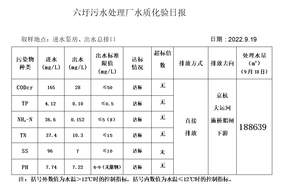 六圩污水处理厂水质化验日报(2022.9.19)