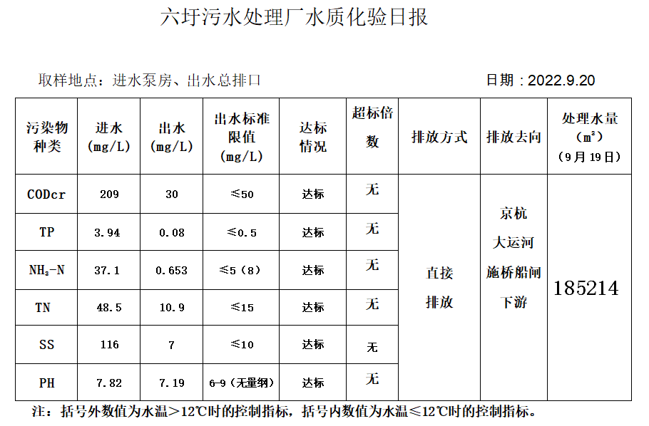 六圩污水处理厂水质化验日报(2022.9.20)