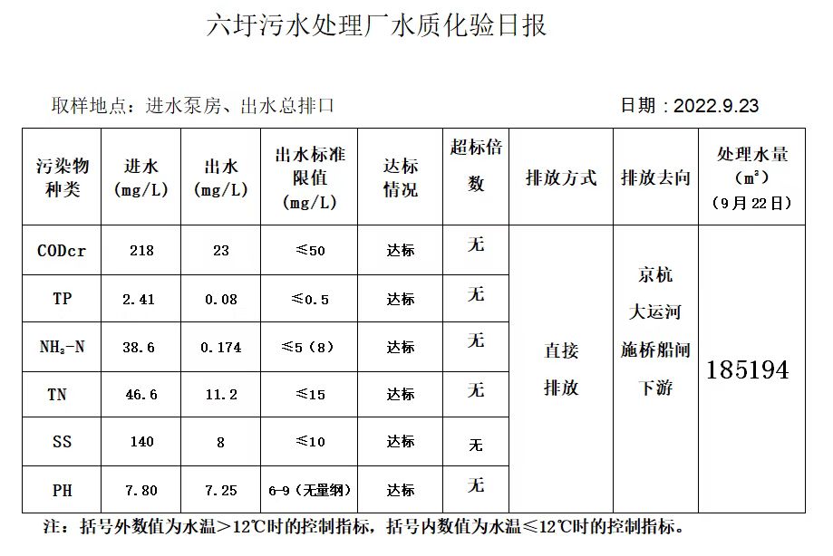 六圩污水处理厂水质化验日报(2022.9.23)