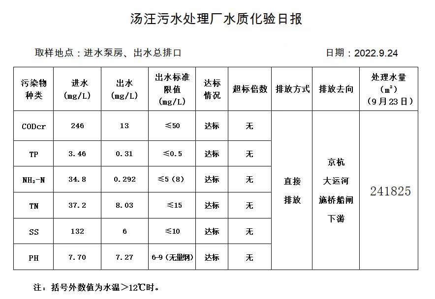汤汪污水处理厂水质化验日报(2022.9.24)