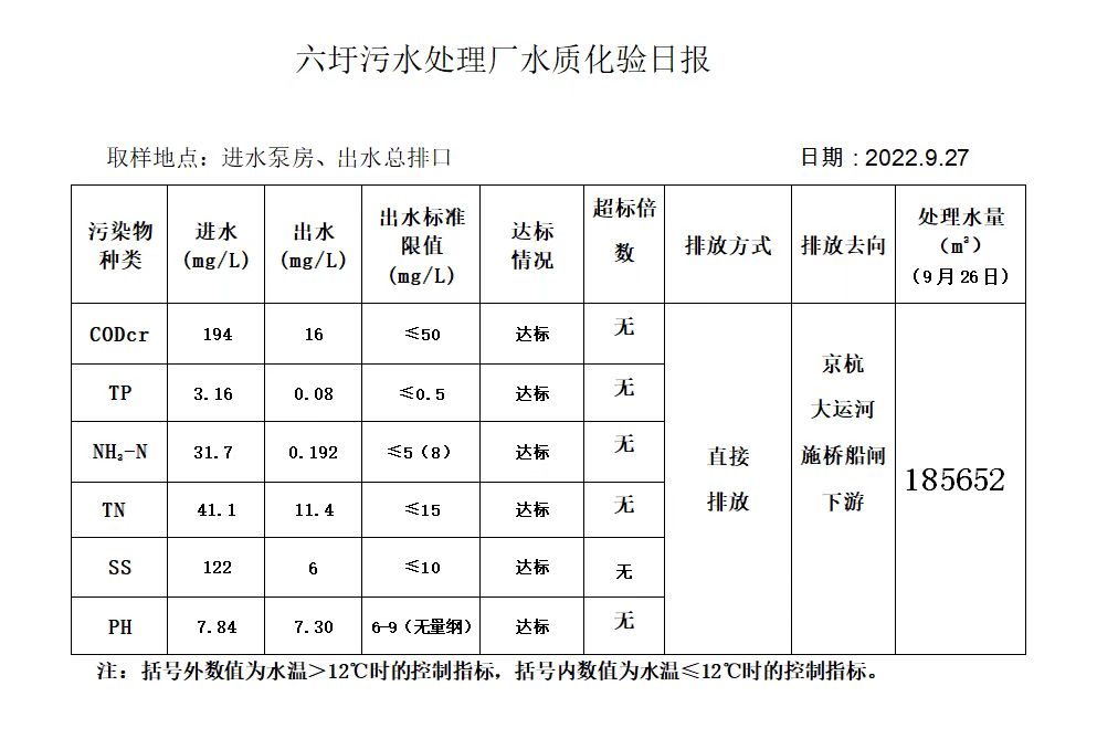 六圩污水处理厂水质化验日报(2022.9.27)
