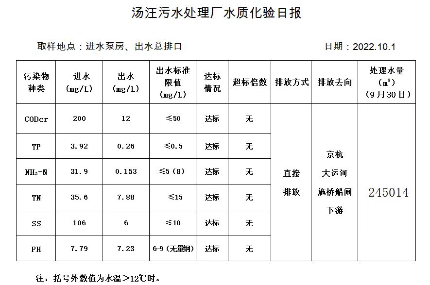 汤汪污水处理厂水质化验日报(2022.10.1)