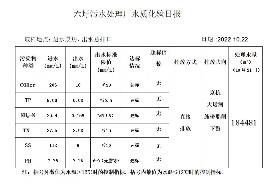 六圩污水处理厂水质化验日报(2022.10.22)