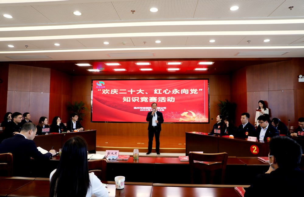 为热烈庆祝党的二十大胜利闭幕,10月25日下午,扬州市洁源排水公司组织开展“欢庆二十大、红心永向党”知识竞赛活动。
