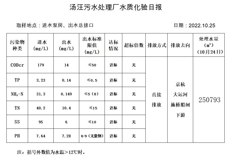汤汪污水处理厂水质化验日报(2022.10.25)