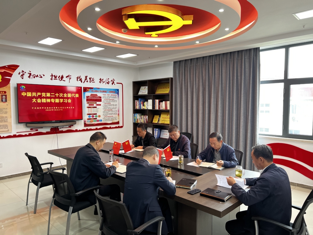 10月27日上午,洁源排水公司党总支召开专题学习会,认真学习传达党的二十大精神,研究部署贯彻落实工作,公司党总支班子全体成员参加会议。