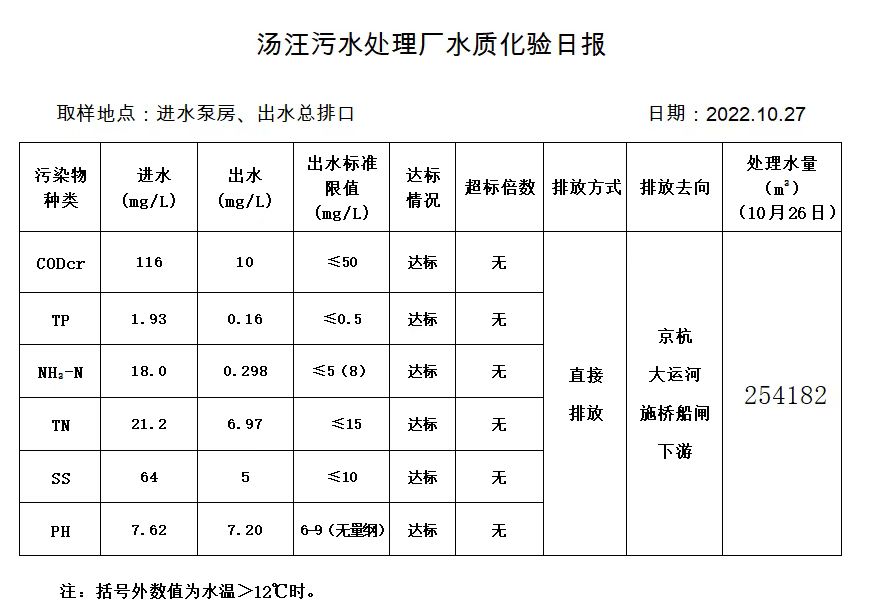 汤汪污水处理厂水质化验日报(2022.10.27)