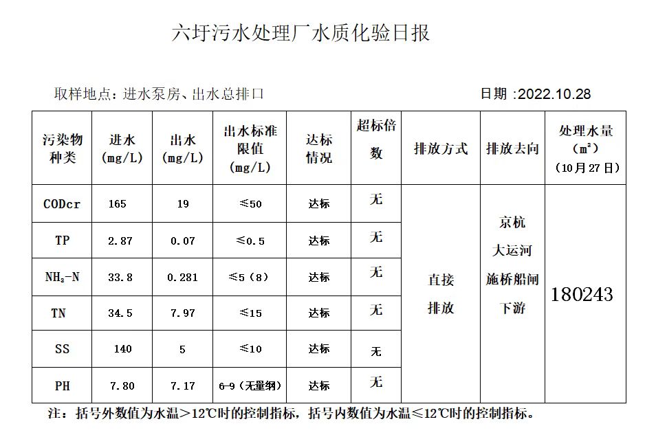 六圩污水处理厂水质化验日报(2022.10.28)