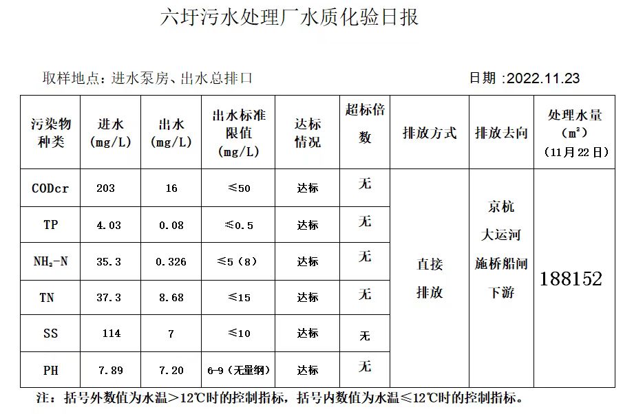 六圩污水处理厂水质化验日报(2022.11.23)