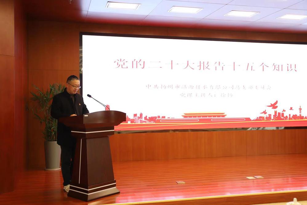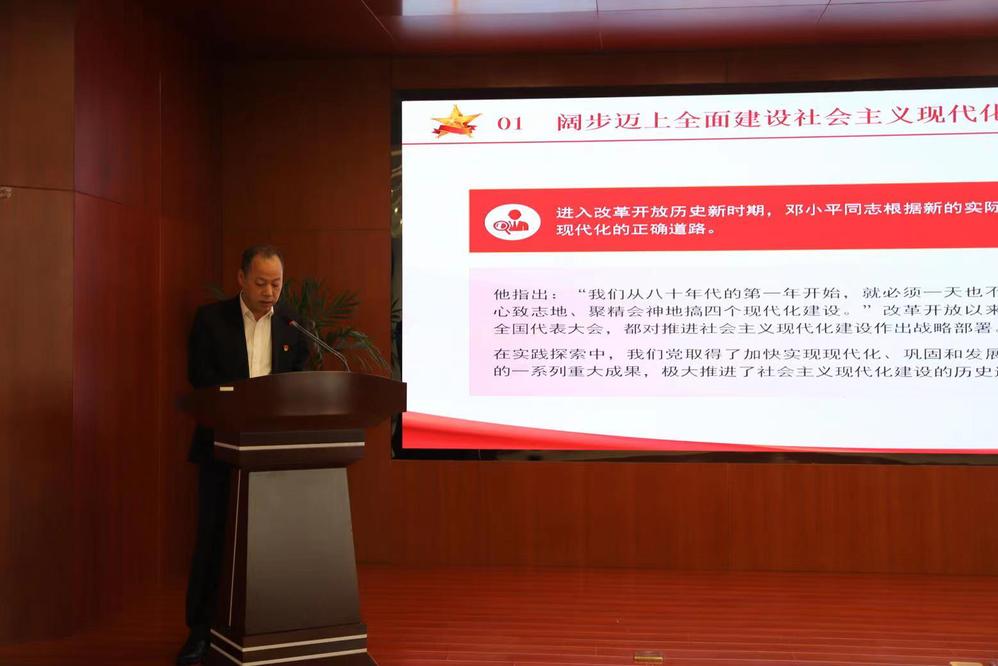 公司党总支书记、董事长刘义忠带领公司新入党同志进行了入党宣誓,公司党总支副书记肖玉康、党总支委员马伟和徐扬三位同志分别围绕学习宣传贯彻党的二十大精神,以深刻认识新时代新征程中国共产党的使命任务、党的二十大报告中新时代十年的历史性成就、历史性变革和党的二十大的十五个知识为题,对党的二十大报告中提出的新思想、新论断、作出的新部署、新要求进行了全面系统深入的宣讲和解读。
