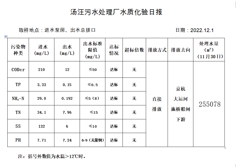 汤汪污水处理厂水质化验日报(2022.12.1)