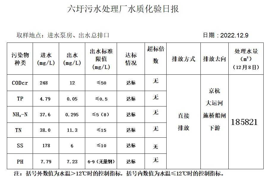 六圩污水处理厂水质化验日报(2022.12.9)