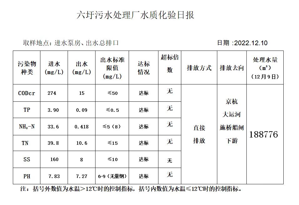六圩污水处理厂水质化验日报(2022.12.10)