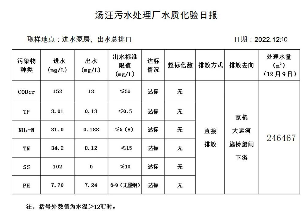汤汪污水处理厂水质化验日报(2022.12.10)